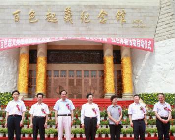 6月28日下午,百色市百色起義紀念館廣場(chǎng)紅旗招展,紅歌激揚,百色起義英雄雕塑園開(kāi)園暨廣西百萬(wàn)青少年“重走小平路”紅色體驗活動(dòng)啟動(dòng)儀式在這里隆重舉行。廣西自治區黨委書(shū)記、自治區人大常委會(huì )主任郭聲琨出席儀式,并與自治區黨委副書(shū)記陳際瓦,自治區黨委常委、秘書(shū)長(cháng)余遠輝一道,共同為團干部、青聯(lián)委員、青年文明號集體代表、少先隊員等青少年“重走小平路”團隊代表授旗,陳際瓦宣布百色起義英雄雕塑園開(kāi)園、“重走小平路”紅色體驗活動(dòng)啟動(dòng),嘹亮的軍號響徹廣場(chǎng)上空,正式拉開(kāi)了“重走小平路”紅色體驗活動(dòng)的序幕。