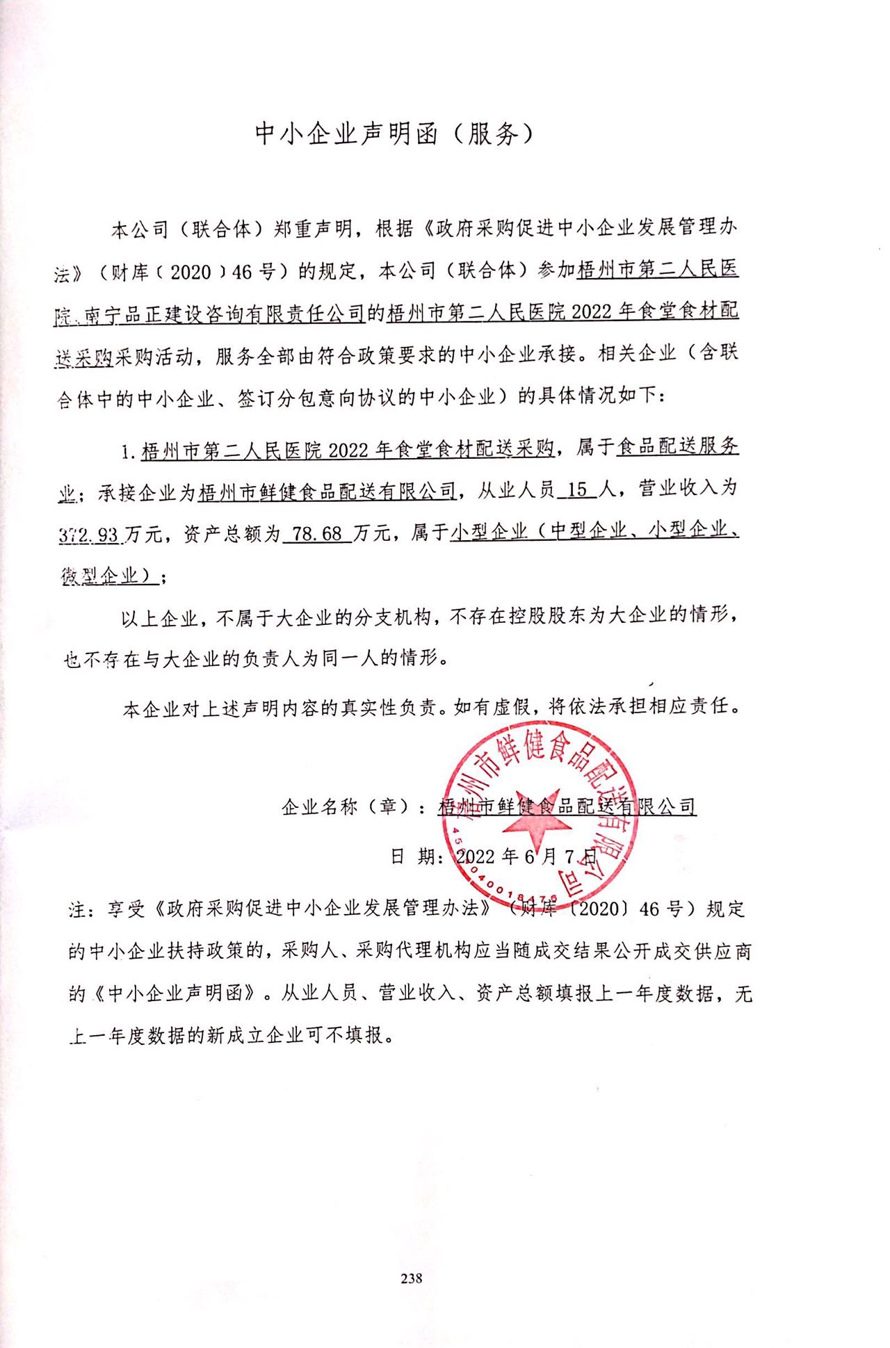 梧州市第二人民醫院2022年食堂食材配送采購(NNPZWZ-2022-C3005) 成交結果公告