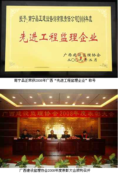 為推動(dòng)我區建設監理行業(yè)的快速發(fā)展,引導我區企業(yè)創(chuàng )建“名牌監理企業(yè)”,激發(fā)監理人員的愛(ài)崗敬業(yè)精神,在全區樹(shù)立起建設監理行業(yè)的良好形象,近日,廣西建設監理協(xié)會(huì )在南寧召開(kāi)了“廣西建設監理協(xié)會(huì )2008年度表彰大會(huì )”。大會(huì )授予南寧品正建設咨詢(xún)有限責任公司等16家單位“廣西先進(jìn)工程監理企業(yè)”稱(chēng)號,授予南寧品正曾振華、黃燕玲和陳秋等36人“廣西優(yōu)秀總監理工程師”稱(chēng)號,授予南寧品正姚思清、劉豫黔和宋熒冬等40人“廣西優(yōu)秀監理工程師”稱(chēng)號。大會(huì )號召受到表彰的先進(jìn)單位和優(yōu)秀個(gè)人,戒驕戒躁、再接再厲,開(kāi)拓進(jìn)取,再創(chuàng )佳績(jì),為全區建設監理事業(yè)的發(fā)展做出更大的貢獻。